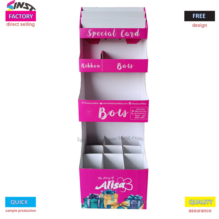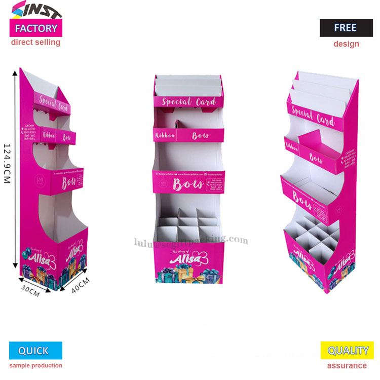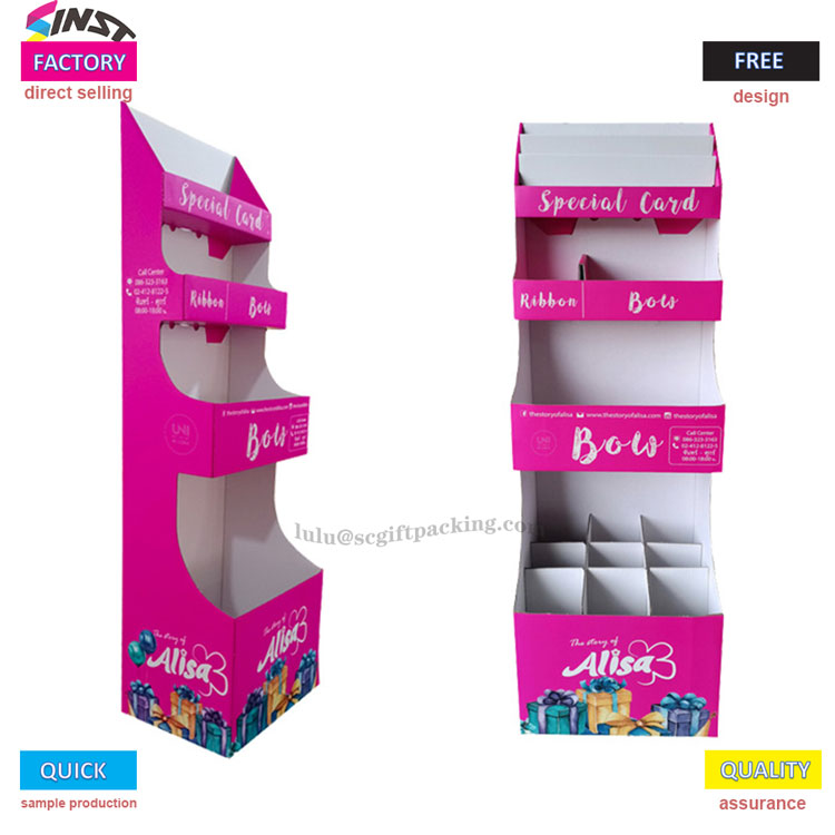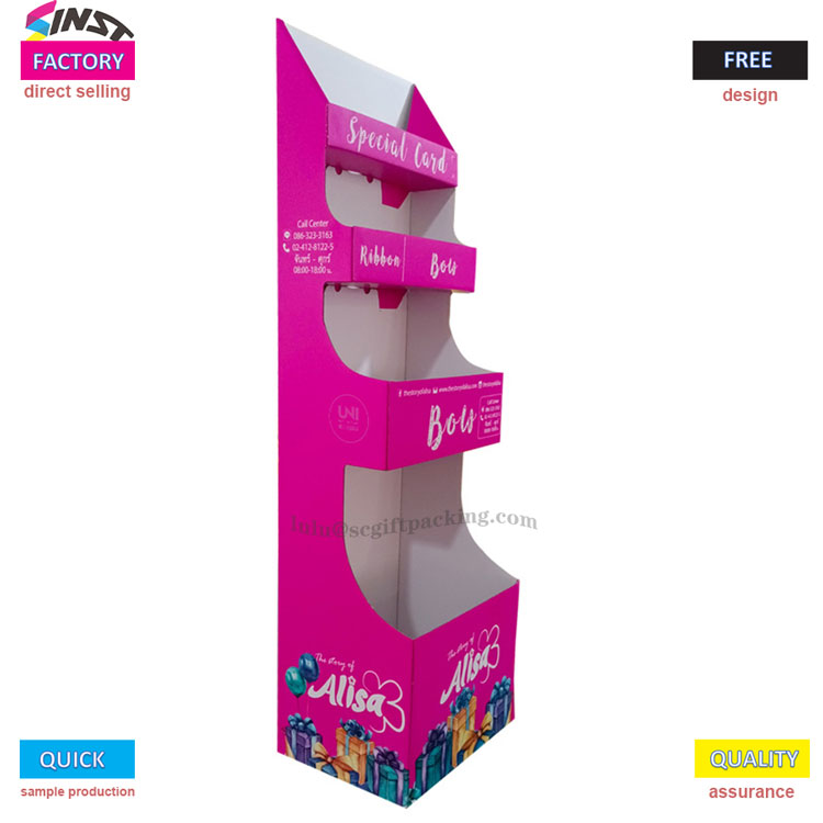 Bu kör kutu oyuncak karton ekran rafı, hem güzel hem de pratik olan çarpıcı bir pembe renk şeması kullanır. Çinli bir üretici olarak, Sinst ürünleri, alt katmanda esnek ekran ve görsel tanımayı geliştirmek için altta basılmış marka ve hediye desenleri ile üç katmanlı bir bölüm tasarımı benimser. Malzeme hafif ve dayanıklıdır, ürün ekranını ve marka maruziyetini etkili bir şekilde geliştirir.