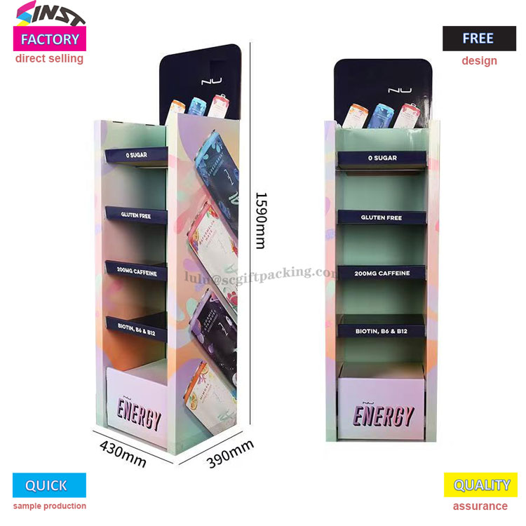 350-600ml şişelenmiş içecekler için uygun yenilikçi çok katmanlı enerji soda ekran standı. Kararlı yük taşıma için yüksek mukavemetli taban, birden fazla senaryo için uygun UV baskılı desenler, kolay sökme ve montaj için modüler tasarım. Dinamik ekranla gençlerin satın alma arzusuna ilham verin, terminal görsel etkisini ve satış dönüşümünü geliştirin.