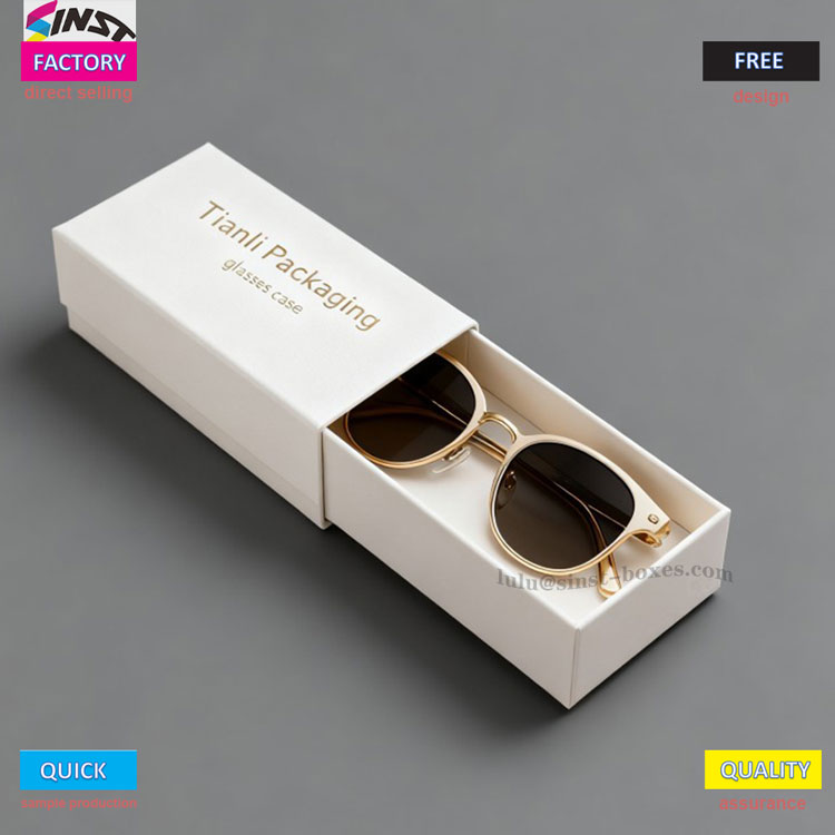 Gözlük hediye kutuları, üst düzey gözlük markası ambalajlarında, hediye vermede, tanıtım faaliyetlerinde ve perakende satışlarda yaygın olarak kullanılmaktadır. Ve Gözlük hediye kutumuzun içi, gözlüklere içbükey bir şekil vermek için özel olarak tasarlanmış yumuşak EVA süngerle kaplanmıştır. İster yuvarlak bir çerçeveye, ister kare çerçeveye, ister geniş bacaklara sahip olun, sallanma korkusu olmadan güvenli bir şekilde tutulabilir ve taşınabilir; Kutu kapağı, oldukça üst düzey görünen ve hem kişisel hem de hediye kullanımına uygun, sıcak damgalama yazılarıyla basılmıştır.