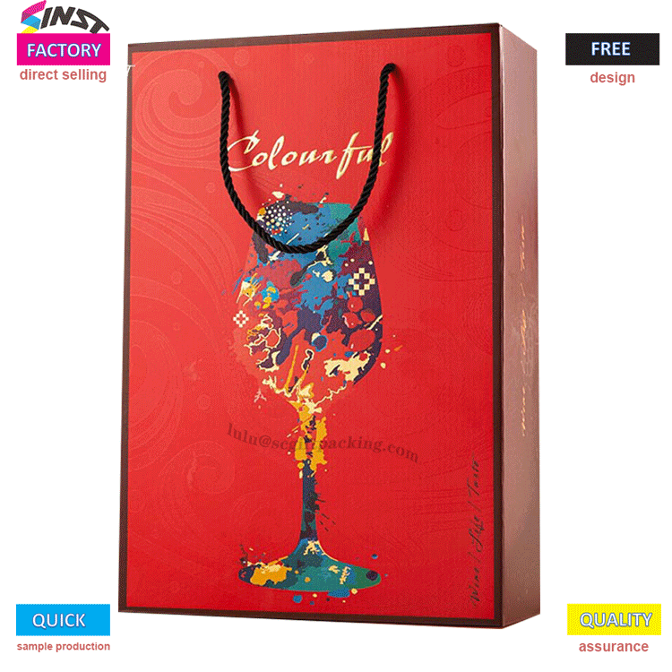 Görsel etkisiçanta"kırmızı+renk" çarpışmasında gizlidir. Ana gövde, "parlayan bir tuvale" benzeyen, yüksek doygunluğa sahip parlak kırmızı kartondan yapılmıştır. Ön kısım, renkli sıçramalı mürekkepten oluşan yüksek ayaklı bir şarap kadehi deseniyle basılmıştır; mavi, sarı ve turuncu renk blokları serbestçe harmanlanmıştır, sallanan bir kokteyli andırır ve markanın "sıcaklık ve çeşitlilik" tonunu taşır.