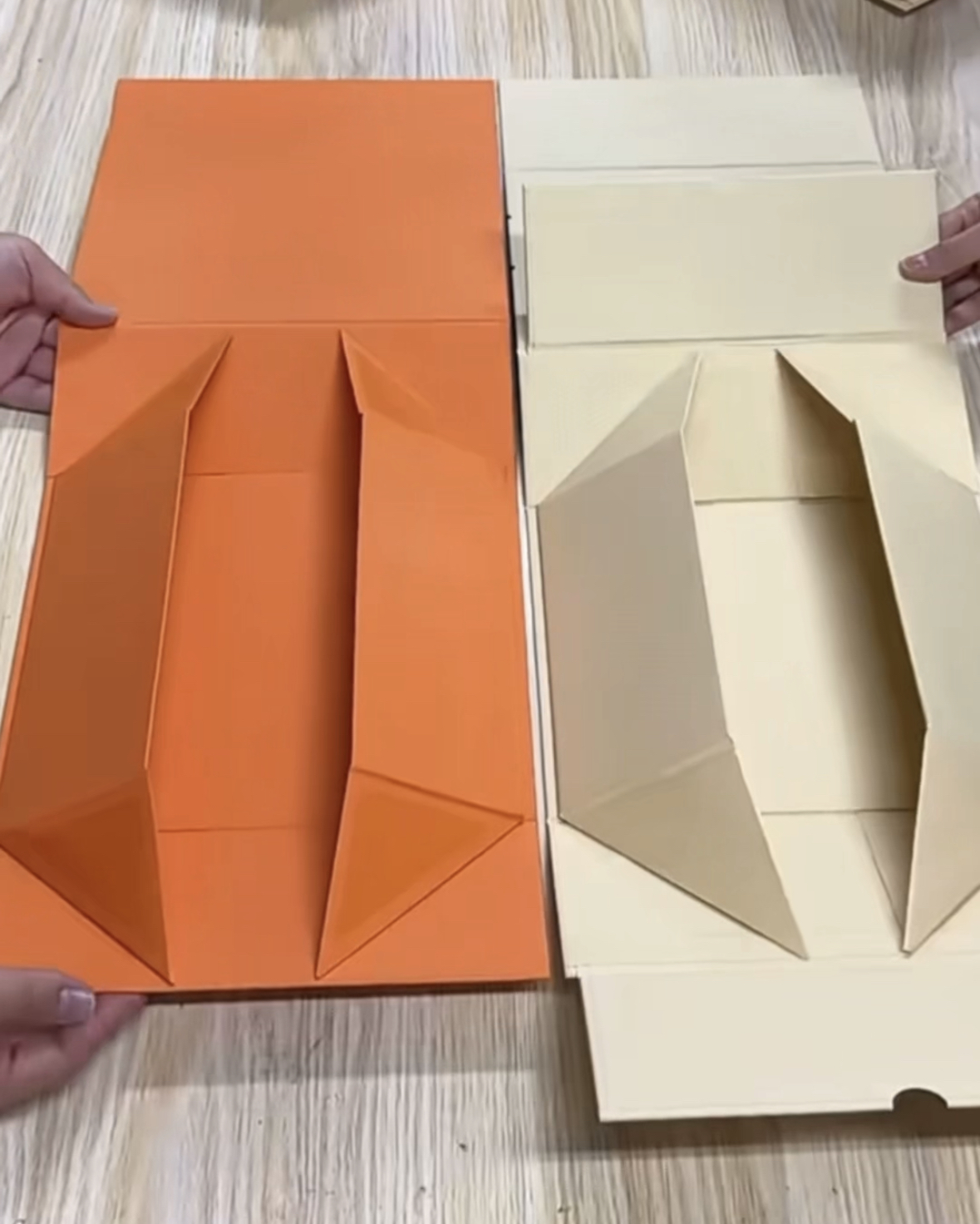 Katlanabilir hediye kutularının tasarımı çok işlevli, pratik ve estetik açıdan hoş. Montajdan sonra deforme olan geleneksel yapışkan katlama kutularının aksine, bu katlanır hediye kutusu manyetik sızdırmazlığa ihtiyaç duymadan birkaç kez düzleştirilebilir ve yeniden kullanılabilir. Bu çok işlevli ambalaj çözümü, tek kullanımlık hediye ambalaj seçeneklerine yeşil bir alternatif sağlayarak sürdürülebilirliği ve işlevselliği birleştirir. Geleneksel yapıştırıcı veya manyetik emme işlemlerini terk eden çift taraflı tahtalar, ışık basıncı ile kilitlenebilir ve herhangi bir alete ihtiyaç duymadan 10 saniye içinde monte edilebilir. Depolama ve taşımacılıkta rahatlık sağlarlar, bu da onları hem vericiler hem de alıcılar için ideal bir seçim haline getirir.