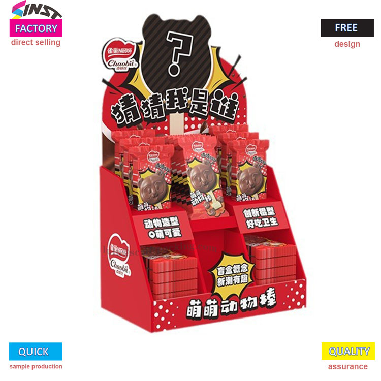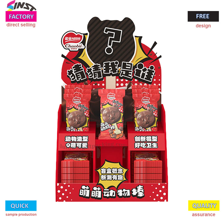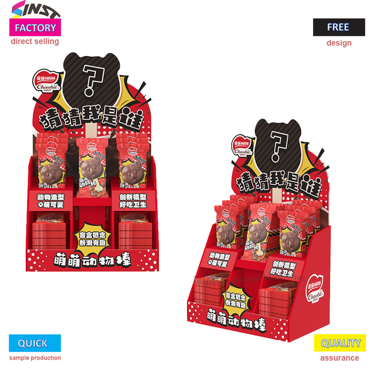 Bu Pet Snack Cardboard PDQ ekran kutusu, ana rengi olarak yüksek doygunluk kırmızısına sahiptir ve görsel etki ile gelir, bu da onu terminal ekranları için göz alıcı bir araç haline getirir. Kutunun üstünde "Tahmin Edildiğimi Tahmin Et" sloganı tüketicilerin merakını teşvik ediyor; İç mekan çok katmanlı katmanlı bir yapı benimser, hayvan şeklindeki atıştırmalık ambalajı (lolipoplar şeklinde) düzgün bir şekilde sergiler.