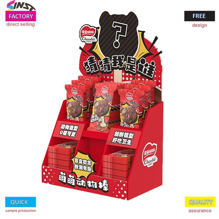 Bu Pet Snack Cardboard PDQ ekran kutusu, parlak kırmızı renk şeması ve sevimli ve eğlenceli bir tasarıma sahiptir. Kutuda, "hayvan şeklindeki q sevimli", "yenilikçi gıda tipi lezzetli ve hijyenik" ve "kör kutu konsept moda" üzerine odaklanan çoklu katlarda kırmızı hayvan şeklindeki atıştırmalıklar (sevimli evcil hayvan desenleriyle basılmış) görüntüler. Evcil hayvan seven aileleri doğru bir şekilde çeker ve göz alıcı terminal ekranları için eğlenceli bir pazarlama aracıdır.