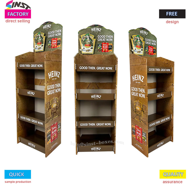 Domates sosu karton teşhir rafı, domates sosu için özel olarak tasarlanmış ve süpermarketler ve marketler gibi perakende sahneleri için uygun olan "güçlü marka teşhiri + pratik teşhir" etrafında toplanmıştır. Domates Sosu Teşhir Standı, farklı özelliklerdeki domates sosunun katmanlı yerleştirilmesi için dört kat depolama alanı sağlar. Standart şişelerden küçük ambalaj deneme ürünlerine kadar, sorunsuz ve sıkışmadan "kendi konumlarına yerleştirilebilirler".