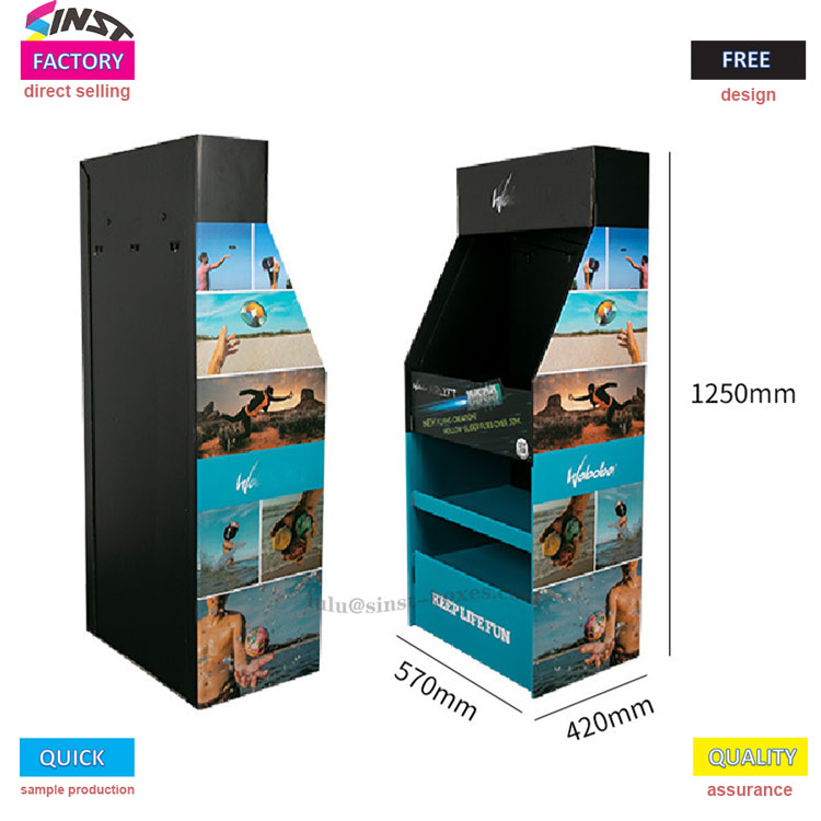 Oyuncak Teşhir Standı, 1250 mm yüksekliğinde, 570 mm genişliğinde ve 420 mm derinliğinde dikey bir yapıya sahip, çok sayıda esnek rafla eşleştirilen "hassas adaptasyon" gibi zorlu bir avantaja sahiptir ve bu da markanın tüm uçan oyuncak yelpazesini barındırmayı kolaylaştırır: üst katmanda büyütülmüş içi boş bir planör, orta katmanda renkli frizbiler, alt katmanda mini top aksesuarları ve yan tarafta asılı küçük hacimli kağıt uçak örnekleri. Klasik modellerden yenilerine, büyük hacimlilerden küçük parçalara kadar tüm uçan oyuncaklar düzgün bir şekilde konumlandırılarak dağınıklıktan kaçınılır ve her ürün görsel bir odak noktası haline gelir.